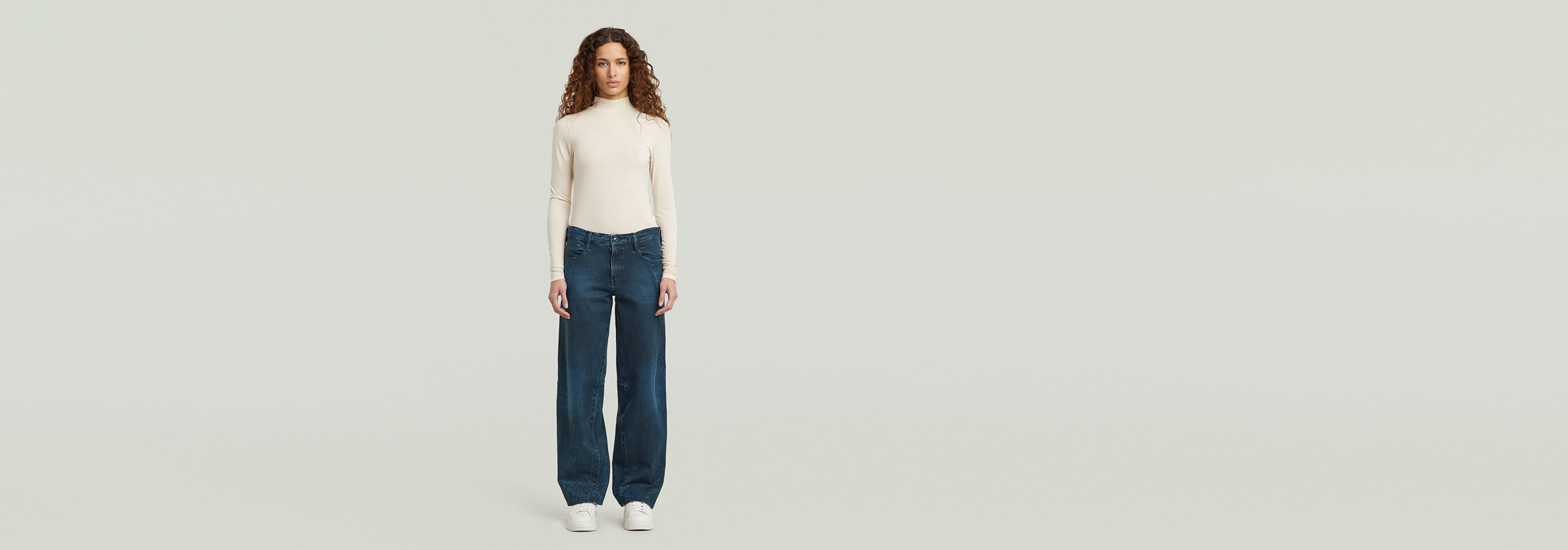 Estos jeans, de corte holgado y cintura baja, están confeccionados siguiendo nuestros característicos principios de construcción en 3D para añadirle dimensión.